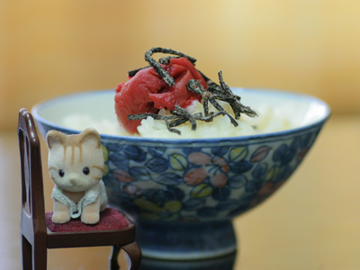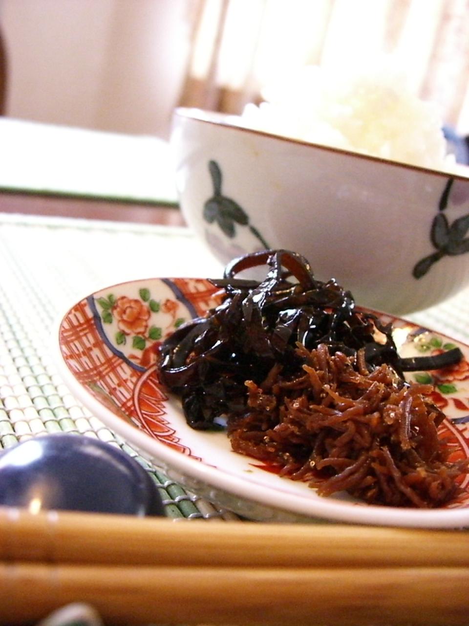 たまごかけごはん♪ 納豆、佃煮、梅干し~♪